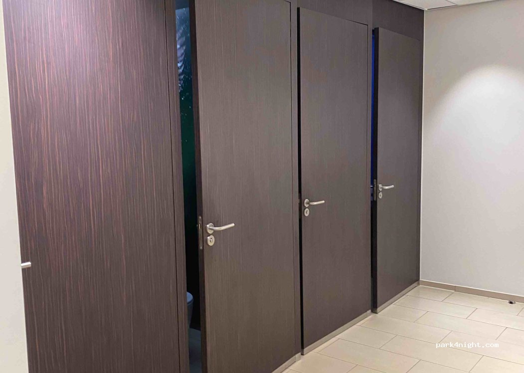 Useful place to stop for a sleep. Toilets are 1€ but the machines take card. Shower you need to go to the fuel/shop kiosk and pay it’s about 3€ this token then goes in the machine to turn the water on for the shower. The room is great with a shelf to put your things but the actual shower doesn’t have a head so comes out like a hose pipe, this is the ladies one. Clean lovely mirrors.