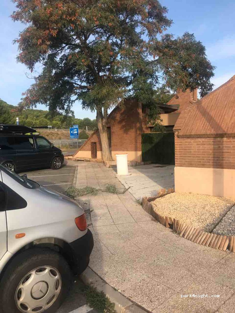 Pasamos la noche aquí, entre camiones, con ruido de la autopista cerca, pero pudimos descansar muy bien.