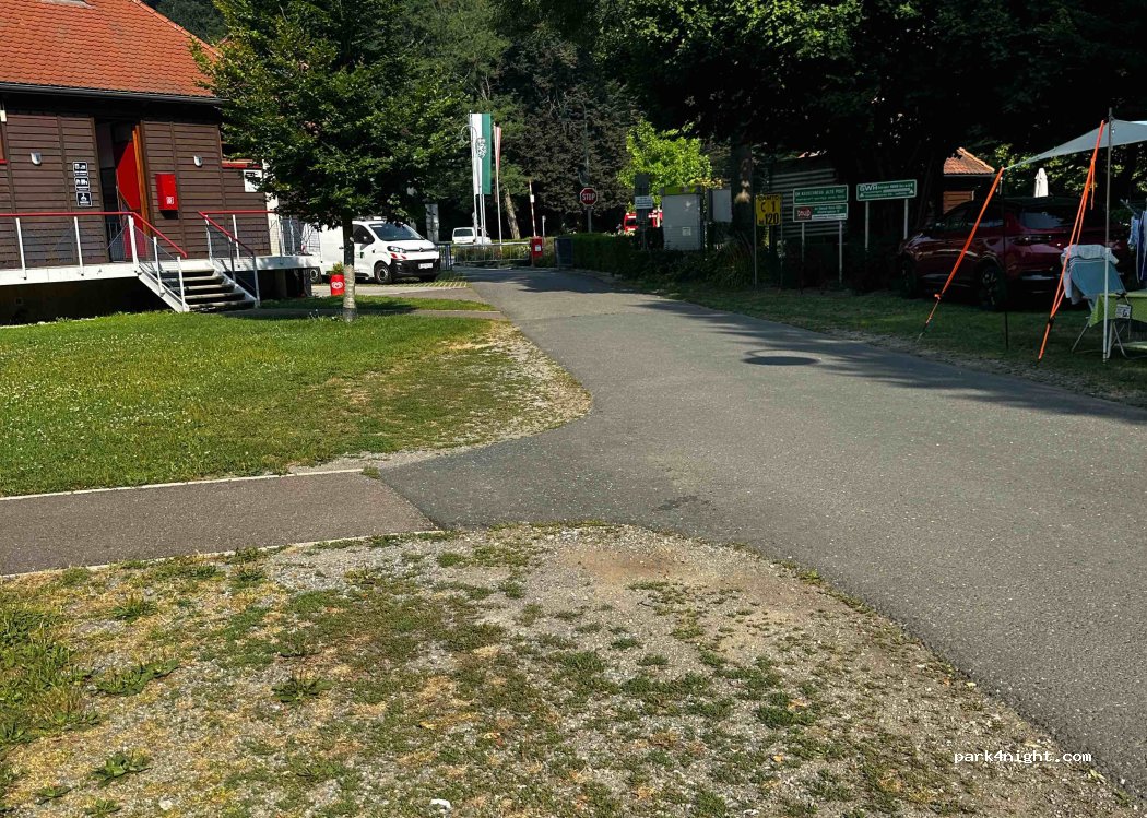 Camping municipal de la ville Leibnitz. Nous sommes venus la nuit sous une pluie battante, nous avons cherché un endroit et avons d'abord survécu à la nuit. Paiement le matin sans problème, la réceptionniste était très sympathique. Installations sanitaires en haut, place pour l'eau douce et les égouts disponibles. Est à notre avis très bon pour une courte escale sur le chemin de la Croatie.