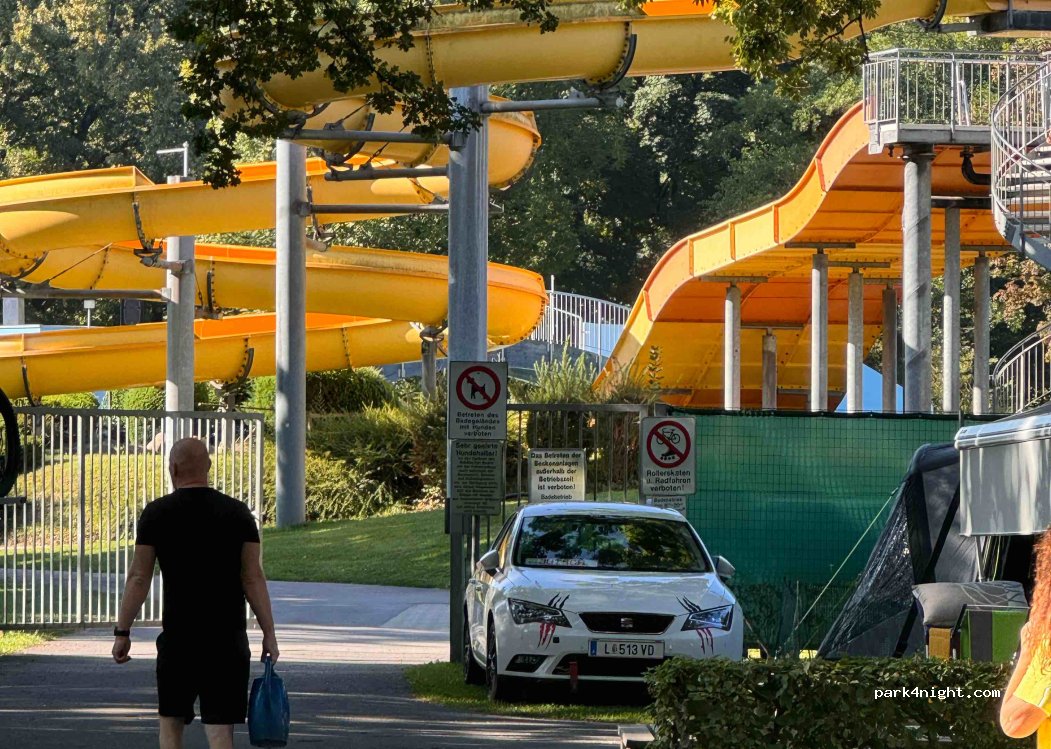 Municipal campsite of the city Leibnitz. We came at night in the pouring rain, we looked for a place and first survived the night. Payment in the morning no problem, receptionist was very friendly. Sanitary facilities top, place for fresh water and sewage available. Is in our opinion very good for a short stopover on the way to Croatia.