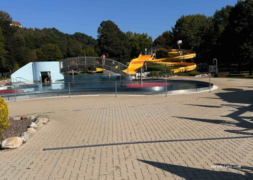 Schöner Stellplatz direkt am Freibad. Spontan buchbar. Sanitäre Einrichtungen sehr gepflegt. Früh kommt ein Bäcker auf den Platz.