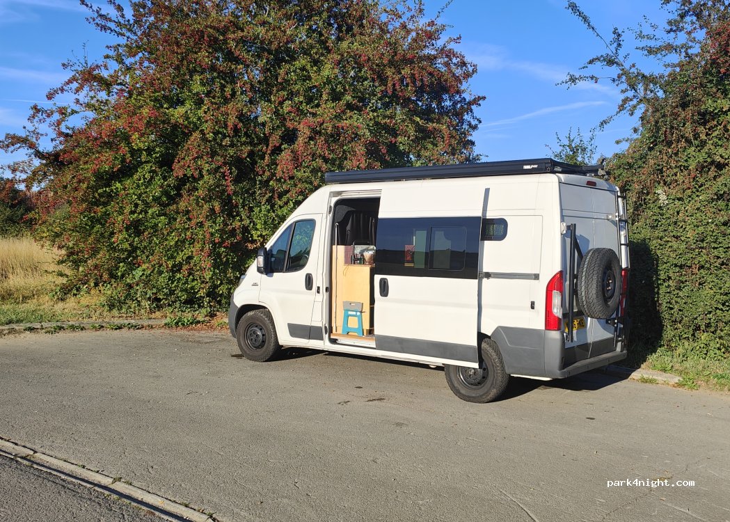 Endroit calme à l'écart de tout parfait pour y passer la nuit, graviers, plat avec une très légère inclinaison qui compenser le plonge avant de mon CC pas besoin de cale , aucun services, aucun magasin à proximité