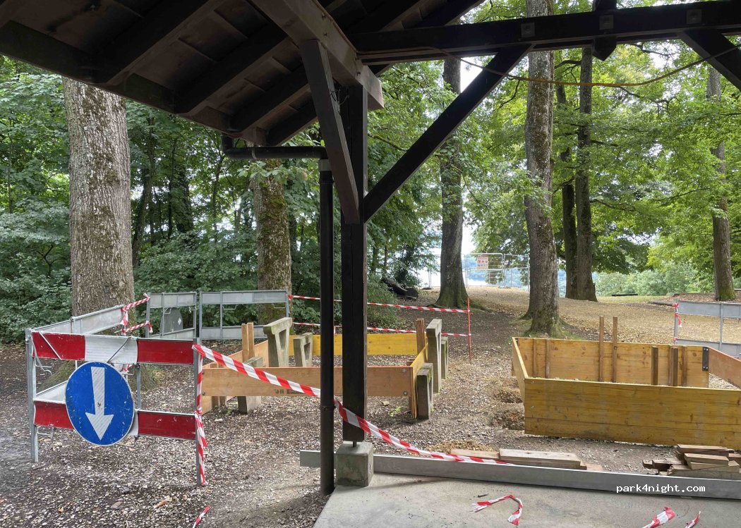 Magnifique endroit semi ombragé par les arbres avec vue imprenable sur le lac et les Alpes. Tables et bancs, plusieurs foyers à disposition (prévoir charbon/bois). Super aire de jeux pour enfants. Parking à 80m des foyers de feu (interdiction d'entrer ou parquer dans la zone). Nombreux allers-retours jusqu'au van (un peu embêtant). Toutefois, super spot à recommander !