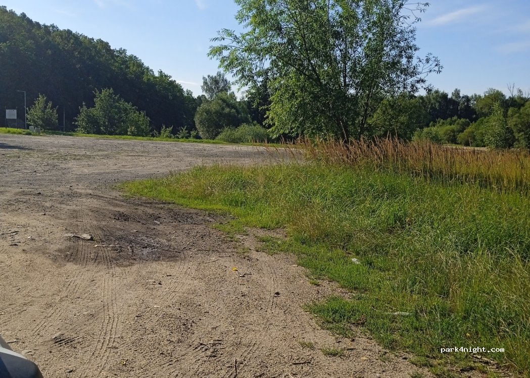 Ciche miejsce do spania. Obok zbiornika wodnego kręciła się młodzież, ale nic nie robili. Tuż obok jezioro, jednak nie widziałam, by ktoś się w nim kąpał. Pływają kaczki. Przepiękny zachód słońca. Trochę nie równy teren. Polecam stanąć w zatoczce w lewym rogu parkingu. Postój jest bezpłatny. Obok domy, ale nic nie słyszeliśmy. Trochę śmieci i zbite szkło. Polecam.