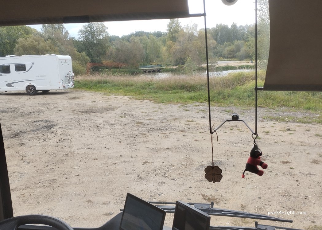 Parking place with a lot of space on closed recreation pool. Small lake; greenery and suburbian surrounding. Good place for one night.