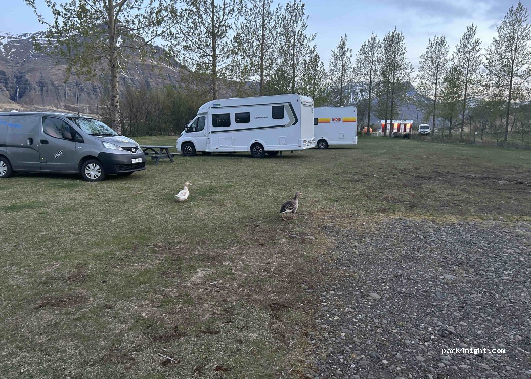 Cute little camping area for campers, vans, and motorhomes, right next to a small pond/lake just outside of Reydarfjordur. Offers free toilets, showers, and WiFi.