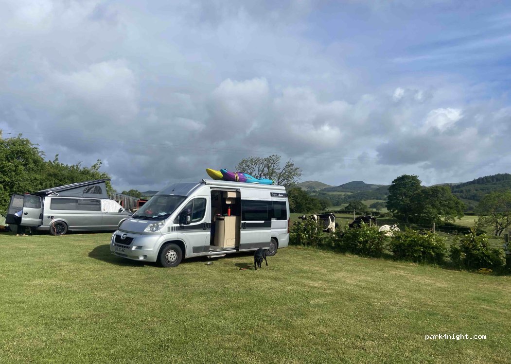 People who run the farm are lovely! I bought fresh milk from the tank and the farmer helped restart my car when the battery died (duh silly me) - ample space, dog had plenty of room on her 15m lead to play and not interfere with anybody else. Lovely location, plenty of hiking routes nearby, lose to Bala lake. Showers and toilets were clean. The cows were friendly. Would stay again!