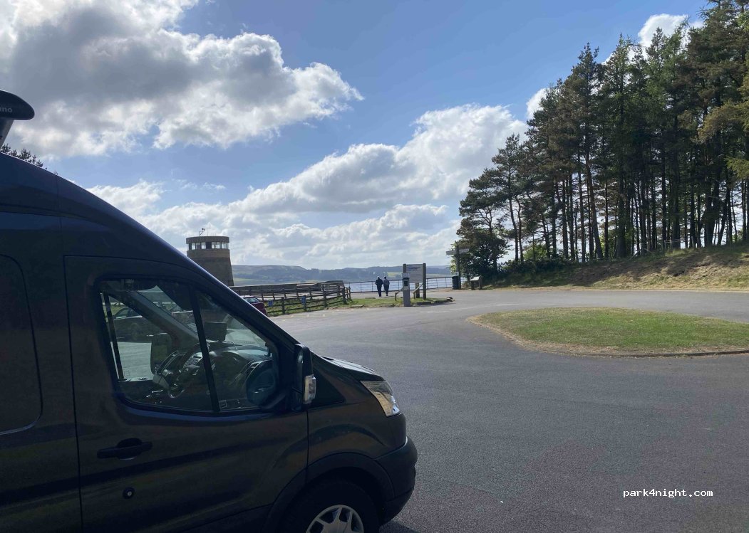 Lovely parking spot at the end of the dam. £10 to park overnight, no facilities at thus car park but nuce clean toilets and shop at entrance approx 3/4 mile away. Barriers on access road leading to car park close just after 8pm which makes location nice and quiet at night. Ranger does regular rounds, couldn't have been made to feel more welcome