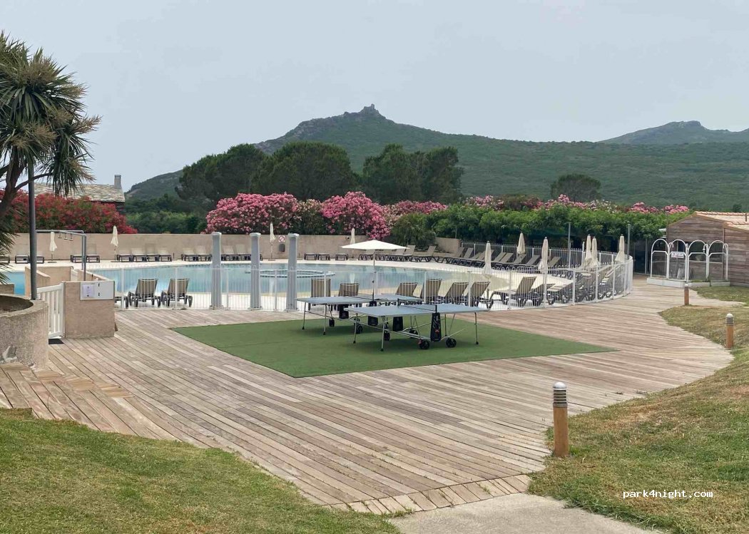notre 1er camping en corse pour notre gros itineo, super espace pour se garer en pleine nature sans délimitation, personnel tres arrangeant (elles ont accepté de deplacer notre reservation), sanitaire propre, piscine sympa ! je recommande
