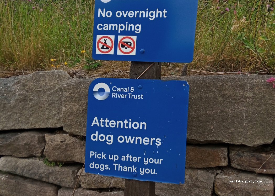 sign from July 2025,stating no overnight parking. also, another sign says not to park on the grass. room for 2/3 vehicles. nice walk along canal. not sure about parking at Navigation Inn, it looked closed, their signs were confusing.