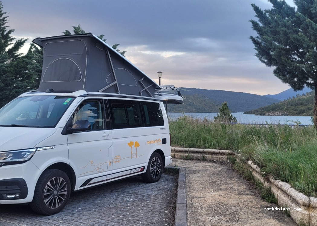 Lugar muy tranquilo, a 5 minutos de Aoiz y con bonitas vistas del embalse y la presa. Solo encontramos otra furgo en el lugar. Por la noche hay algo de luz con las farolas de la presa y el aparcamiento, pero nada molesto para dormir. Por ponerle un pero, no hay contenedores o papeleras. Se puede dormir estupendamente.