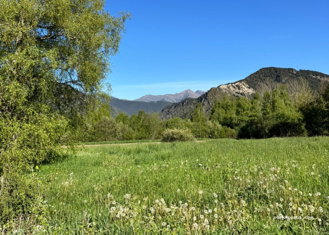 En pleine nature, au dessus d’Andorre. Toilettes, eau potable, pkg voiture + pkg camping car. Nombreuses tables de pique nique. Départs de rando (lac avec barrage et accrobranche à 30 min à pied). Parfait pour un court séjour !