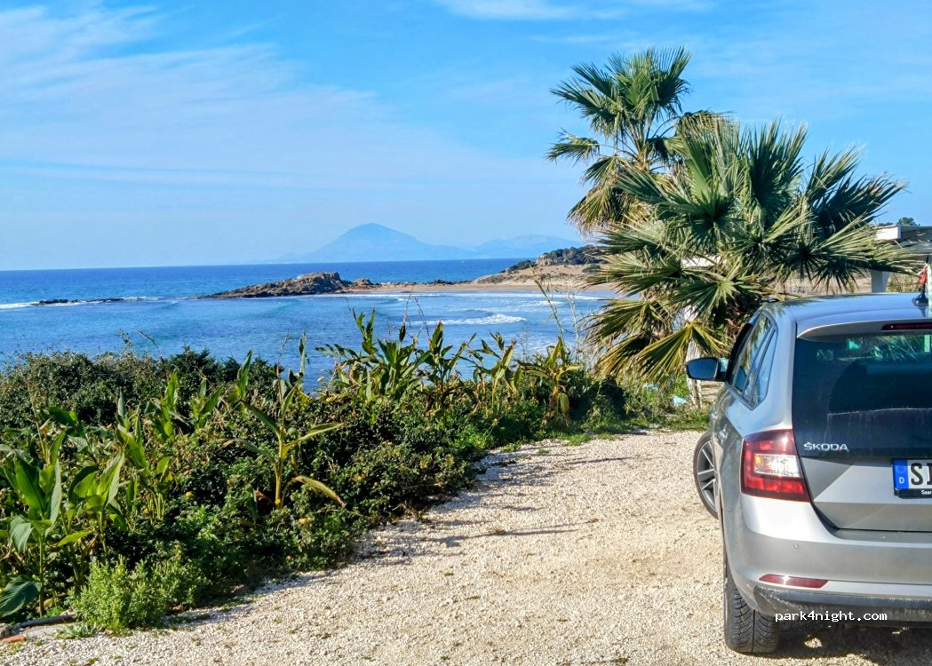 Toller Ort zum Übernachten! Super schöner Stellplatz mit Blick auf Strand und Meer und Palmen. Es gibt: WLAN, Strom, warme Aussendusche, saubere WCs und die Möglichkeit Wasser aufzufüllen. Der Besitzer ist super freundlich und ein toller Gastgeber. Der Ort ist toll mit einem kleinen Supermarkt, der in der Off Season von 17-19 Uhr geöffnet hat. Waschmaschine 4 Euro pro Waschgang.