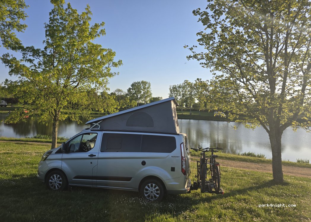 Stationnement paisible en bord d’étang, apprécié pour son calme, sa propreté et son cadre naturel. Bien ombragé, accessible à tous les gabarits. Pas de services camping-car. Réception satellite variable selon l’emplacement, 4G généralement bonne.