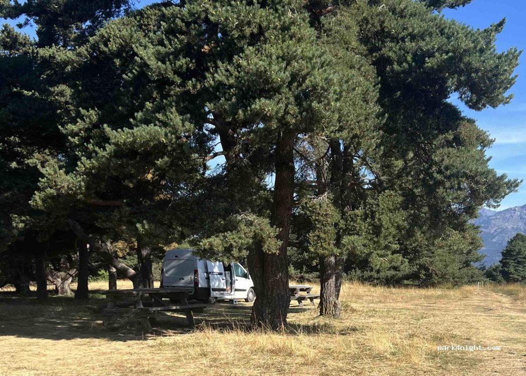 Magnifique, nous y sommes monté en fourgon, chemin en gravillons puis en terre un peu chaotique en haut mais ça passe bien. La vue est superbe ( village d'Ancelle dans la vallee) et l'endroit calme et agréable pour pique nique et pourquoi pas dormir. Les barbecues sont possibles également. Nous étions seuls à cette période, nous reviendrons.