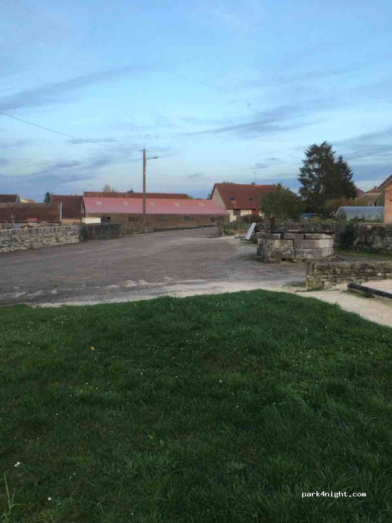 No service but parking behind the cemetery with a communal water tap between the town hall and the church. The farmhouse nearby has sometimes 1 camper.