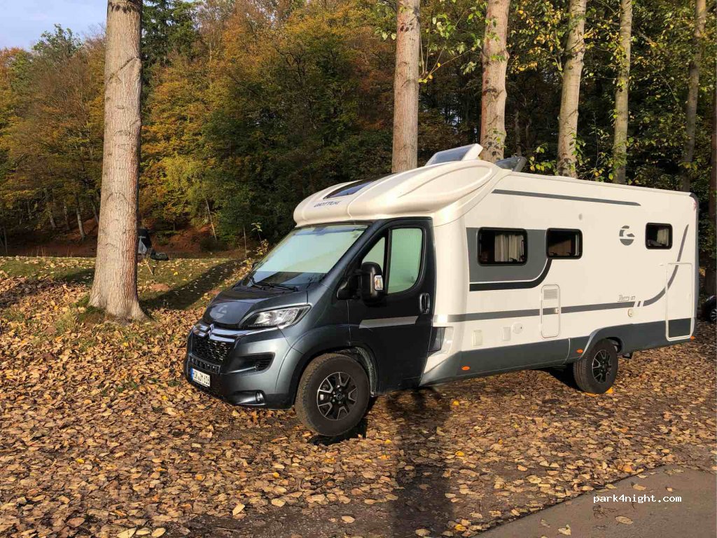 Außerhalb der Ortschaft gelegen. Direkt an einem kleinen Fischteich ist dieser Parkplatz, der eigentlich für Wanderer und Anglern ist. Sehr ruhige Gegend. Die Plätze sind im Halbschatten.