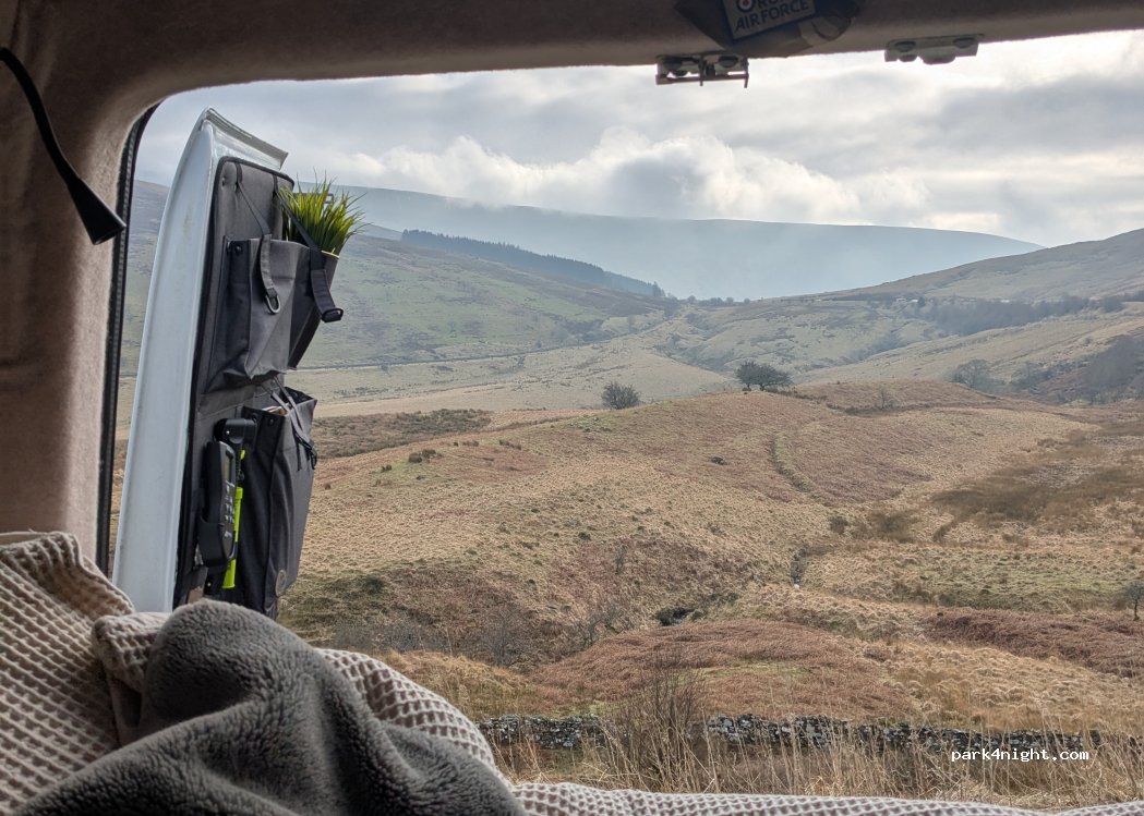 Amazing views into the valley. We stayed the night no bother. Just down the road from Pen Y Fan. I personally wasn’t affected by the voice of the food van, they are harmless! Highly Recommend!