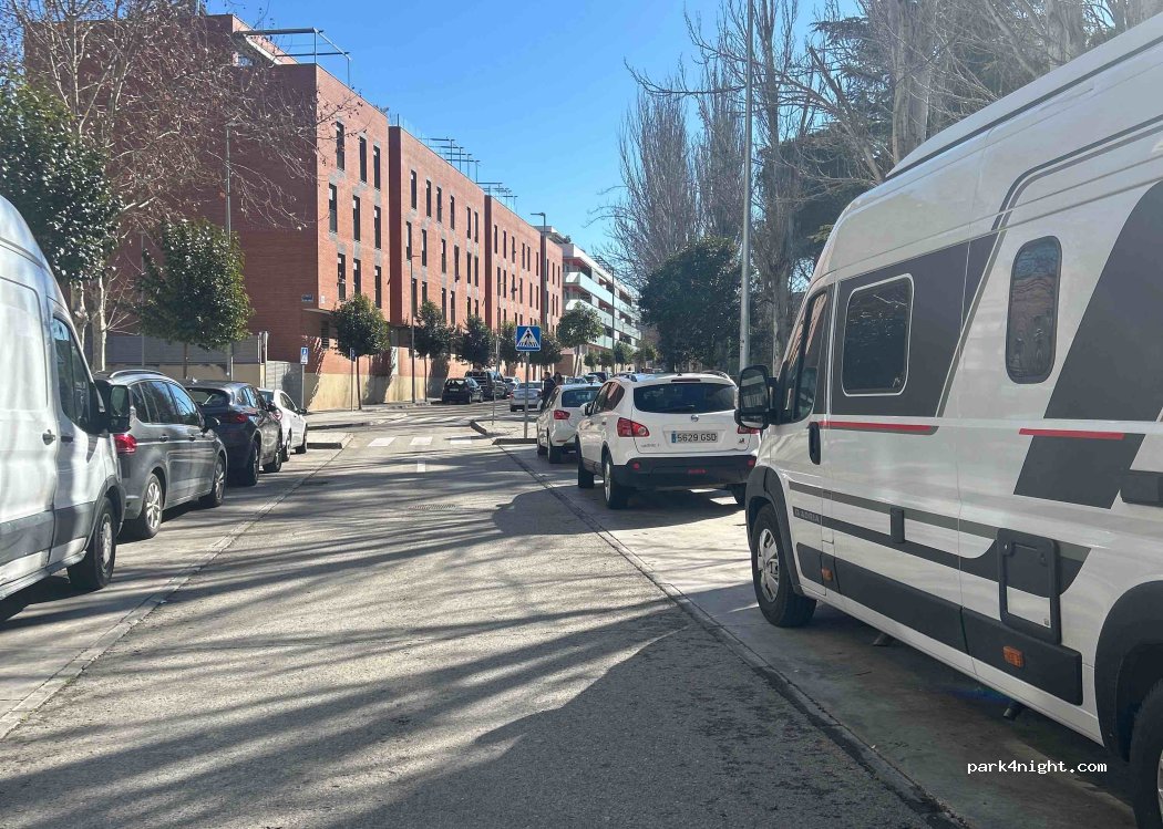 En octubre. Es fácil encontrar un aparcamiento lo suficientemente largo para una autocaravana. Es zona urbana y aunque hay un parque, también hay bloques de edificios. Pasamos una noche y no paraban de salir y aparcar coches, además como se aparca en ambos lados de la calle, los coches pasan por en medio y lógicamente se les oye y bastante. Está bien para aparcar y no tanto para pernoctar.