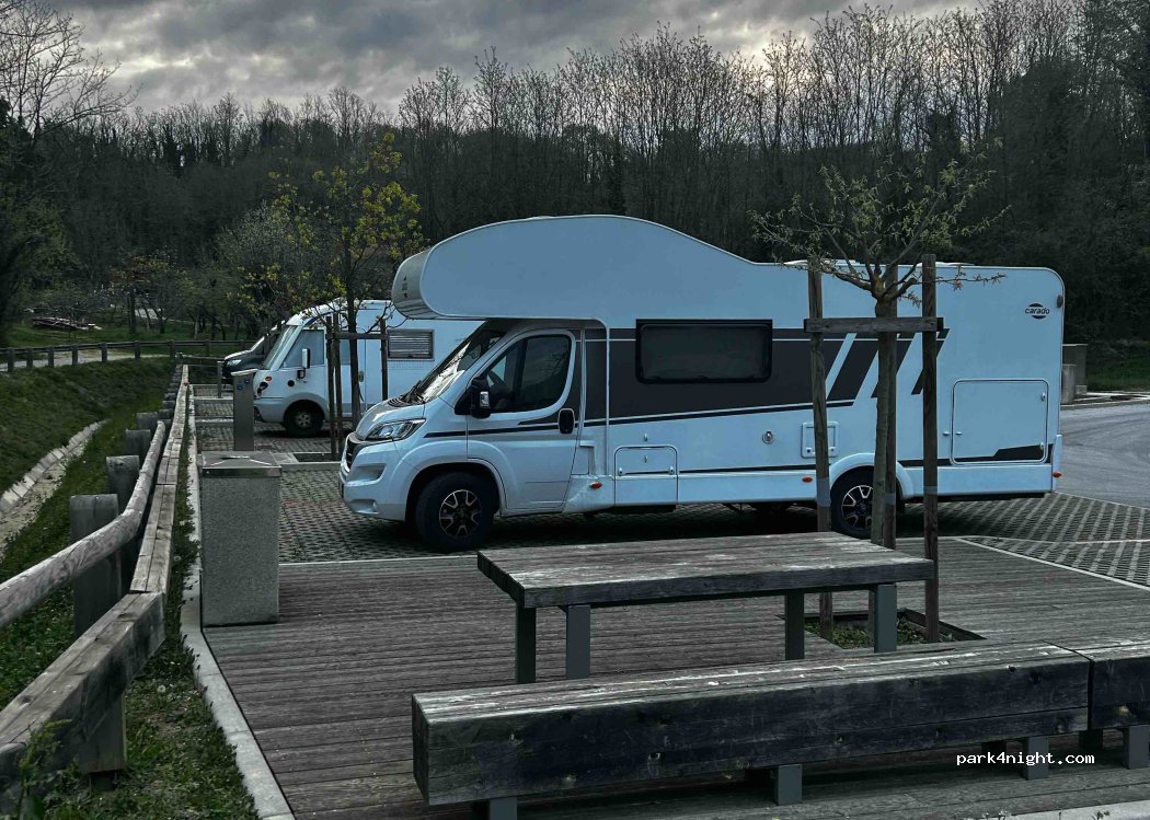 Un ottima tappa di passaggio per una notte. Il posto è molto tranquillo. Ci sono solo alcuni posti con le colonnine e quando siamo arrivati noi erano tutti occupati. In emergenza c’è anche uno spiazzo sterrato dove mettersi se non si trova posto.