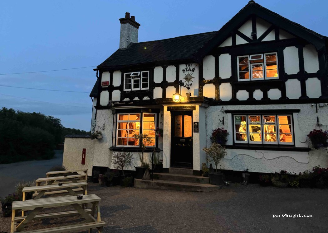 The star inn, a lovely country pub. Good food and atmosphere. Pub was happy for us to stay in car park after eating. Quiet country roads.