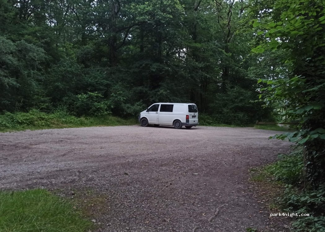 Accès limité aux 2m max. Parking en terre battue, 8-10 places. Pas de services. Proximité de l’étang d’or. Balade très sympa à faire autour. Nuit tranquille, promeneurs à partir de 8h mais sans réelle dérangement. C’était bien :)