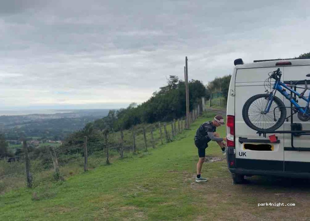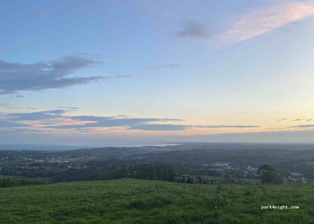 Super spot avec une vue sur la ville et l’océan. On a garé le van sur la plaine à droite avant d’arriver au parking (100m avant), pour avoir la vue il faut accepter d’être légèrement en pente mais ça valait tellement le coup! On était 4 vans/voitures sur cette plaine et 3 autres vans étaient sur le parking, super ambiance à l’apéro! Merci pour le spot
