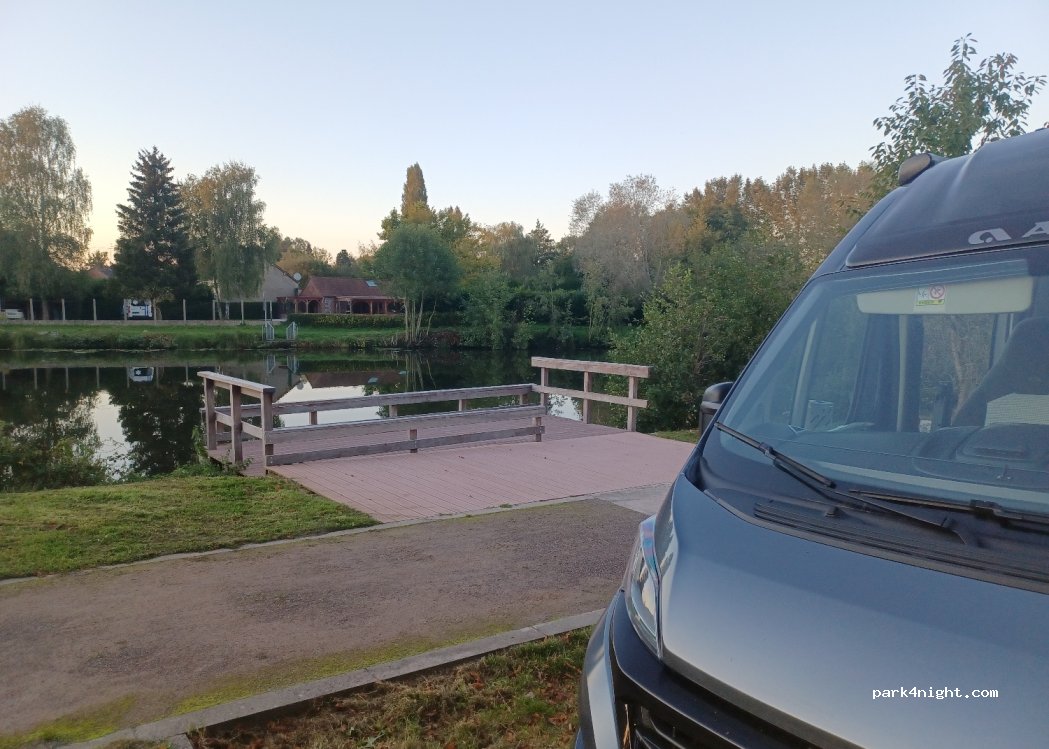 Sympathique petit endroit au bord de l’eau. Calme et propre. La meilleure place et celle au bord de la rivière sous le grand marronnier, mais attention pas de satellite . Un petit aménagement, eau et vidange serait bien venu, peut-être pour bientôt.