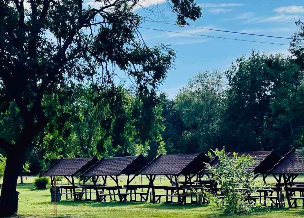 Beautiful site right by the river, a wild camp with two restaurants and a hamburger stand, good beer (also on tap), excellent food, and a beautiful view.