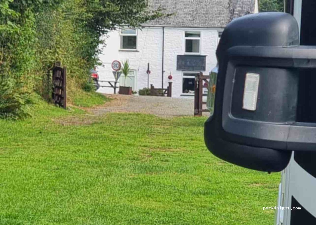 I rang ahead and booked a table and asked to stay. Worth doing as there isn't much room for more than 2 or 4 vans. Solid pub food, very friendly. loos in the pub and no other facilities. Flat-ish pitch, hedge protects from road noise.