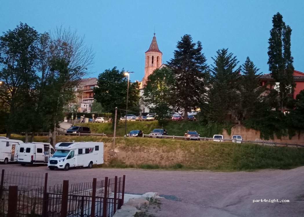 Bon parquing gratuit i practicament buit de vehicles, per la nit només 3 autocaravanes i 1 furgoneta. Totalment tranquilla lluny de carrers transitats.Bar i botigues a 100 metres.