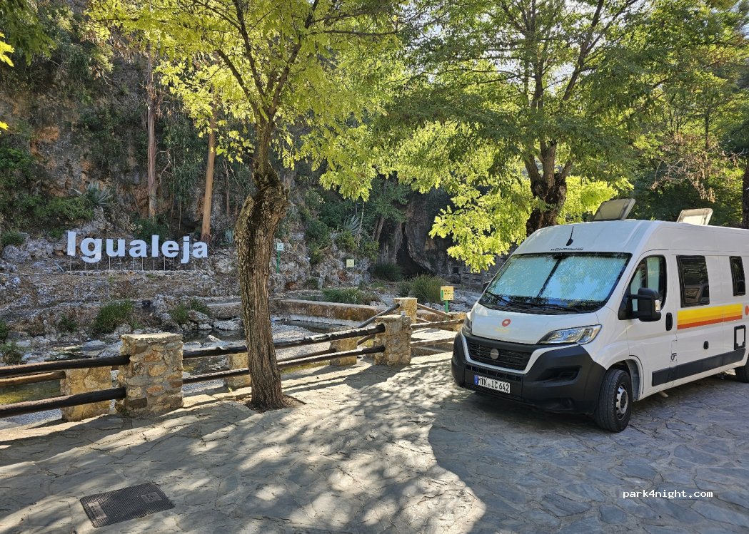 Nacimiento del rio Genal,solo hemos parado ,no sé si se puede pernoctar, tiene zona de picnic solo con bancos y parque infantil. Precioso!