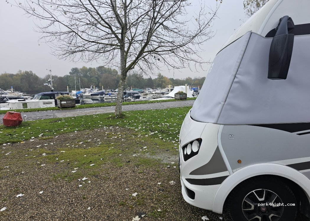 Lovely spot in the marina. There are about 25 hard standing places for motorhomes. Even late September it was fully booked, so reservation is recommended. The units are positioned quite close together (hence 4 stars not 5), with grassy banks where you can sit. Clean sanitary facilities. Friendly harbour master. A 15-minute bike ride into the city centre.