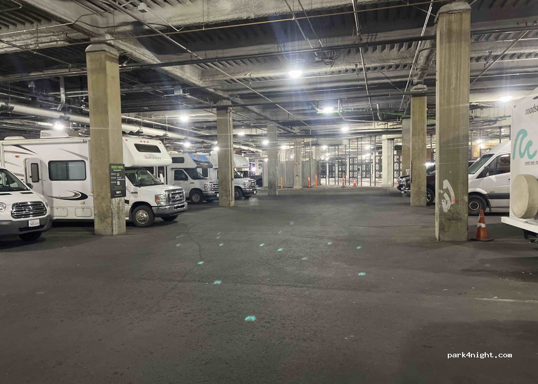 30 dollars pour 24h super bien situé ! On a pas dormi dedans mais je pense qu’on peut ! Pas besoin de séjourner à l’hôtel pour y stationner !