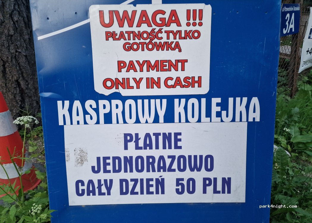 Closed parking lot close to the Kasprowy cabin lift. Very nice and quiet location, the parking lot is a bit uneven, but you can easily find some levelled places for overnighting. 300 meters from petrol station, bus stop, and shopping, 1,5 km from the city center. 25 PLN/day