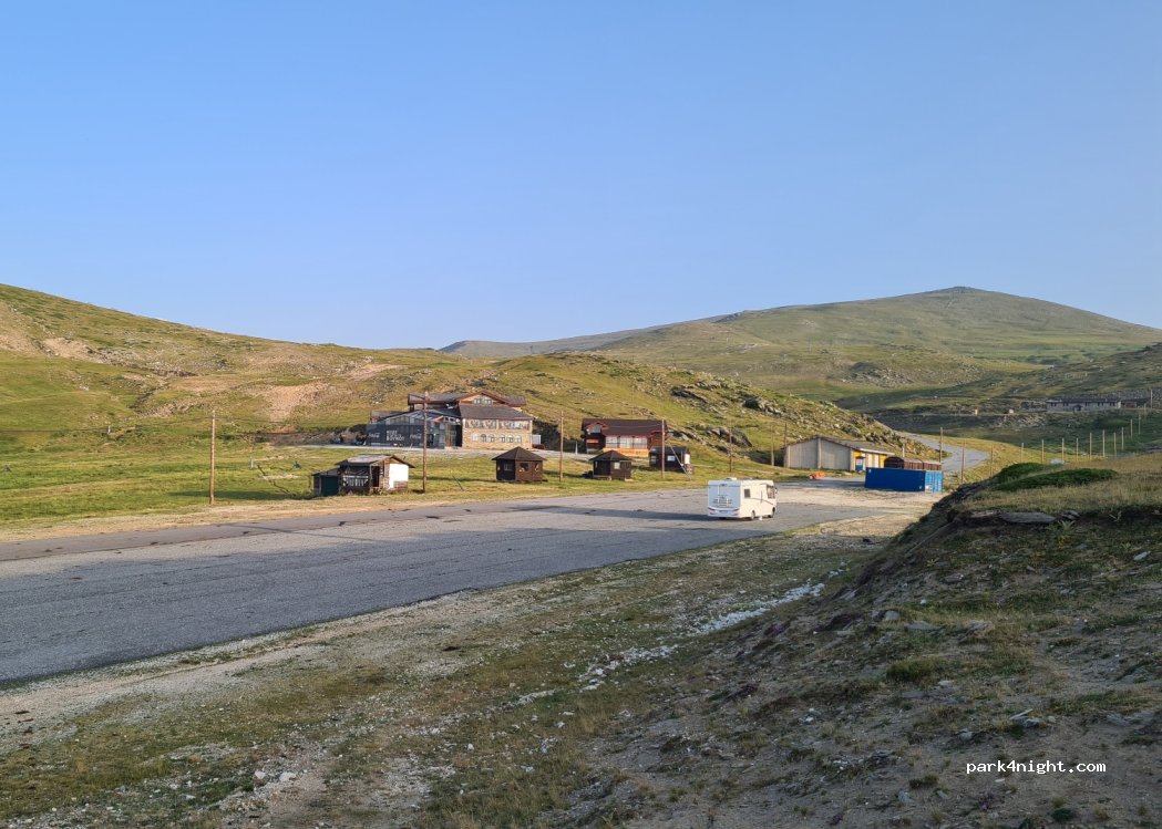 Parking de la station de ski. C'est sur 2000 mètres, donc il fait froid. Un appareil de chauffage est recommandé. Nous avons passé une nuit calme mais venteuse.