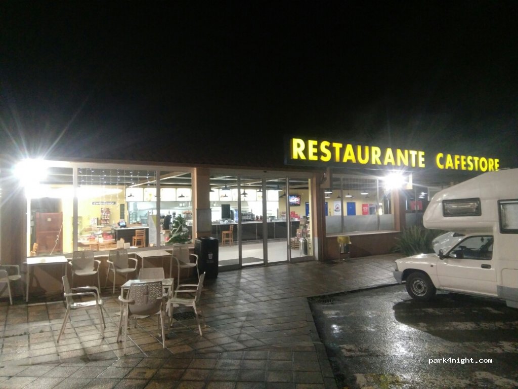 Repsol gas station park. Parking where you can spend the night, hotel tem, cafeteria where you can use the toilet and shower.