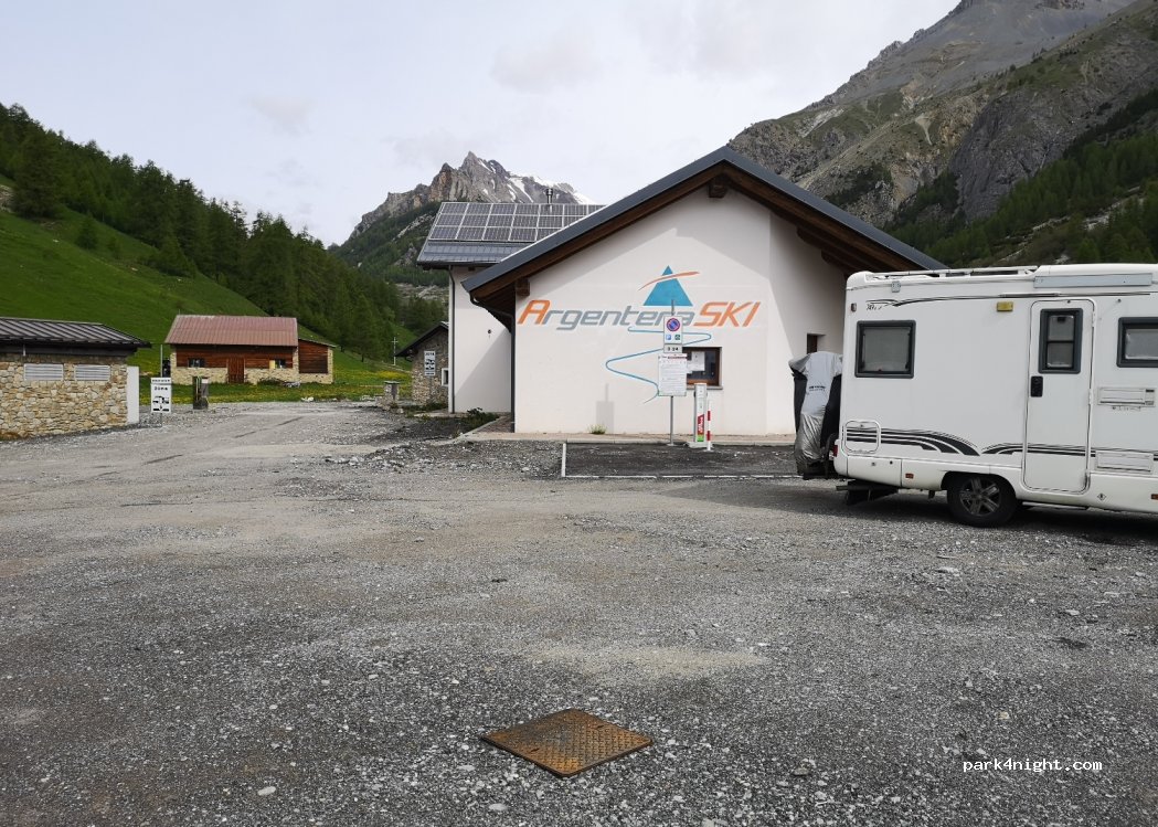 Parcheggio tranquillo e gratuito a circa 10 km prima del Colle della Maddalena. Il parcheggio si sviluppa nella valle dei monti, con un bel ruscello a fianco. C'è una fontanella gratuita dove poter riempire i propri serbatoi o gli utenti che ne fanno uso.