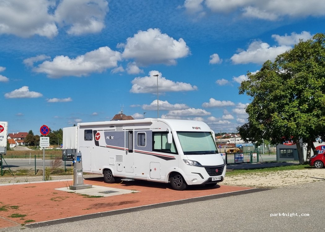 Très pratique pour les commodités avant de rentrer dans Vienne. Nous y avons dormi et eu une nuit assez calme jusque 07h ou les premières voitures ont bougés. Les prix sont les bons, 2€ kw/h / cela nous a permis de charger 18h. 2€ les 8 min d’eau avec un bon débit / environ 120l pour 2€