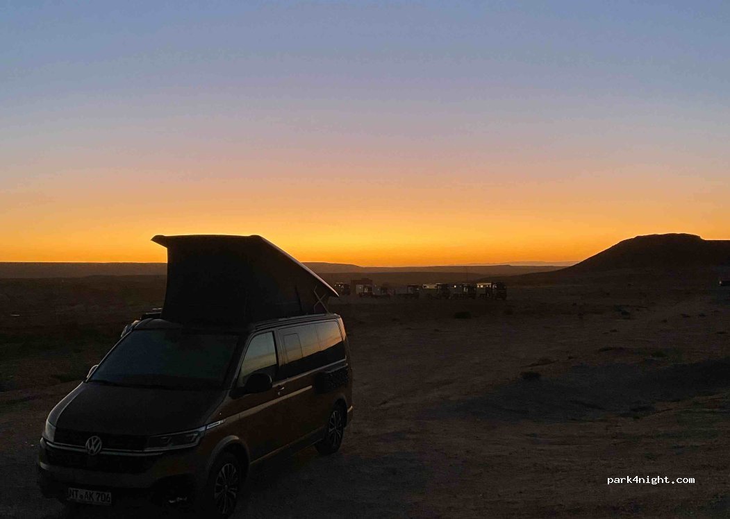 Super endroit au calme avec vue sur le ksar. L’endroit est encore très propre et doit le rester ! Accès par une petite portion de piste facile. Aucun dérangement de vendeur ambulant ou tout autre. Calme absolu. Exposé au vent. Accès en 15 minutes à pied au ksar qui est somptueux !