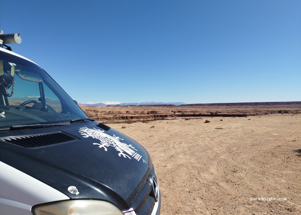 Herrlicher Ort vor der alten Medina und den schneebedeckten Bergen mit Blick auf den Fluss und die Feldfrüchte. Ein riesiger Ort, an dem Sie viel Auswahl haben, um zu landen. Achten Sie jedoch darauf, nicht zu nahe an den Klippen zu parken: Wissen Sie jemals ...