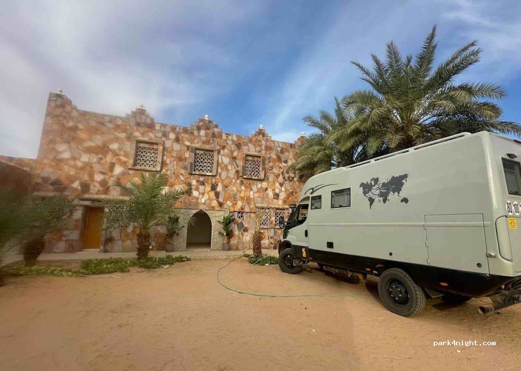 Accueil chaleureux par Mohamed, Bel emplacement proche de la ville, douche chaude avec bonne pression, sanitaires propres, Mohamed est très attentif pour organiser des sorties en 4x4, a même pu nous trouver un garagiste compétent,le prix par 24h est de 10 euros,