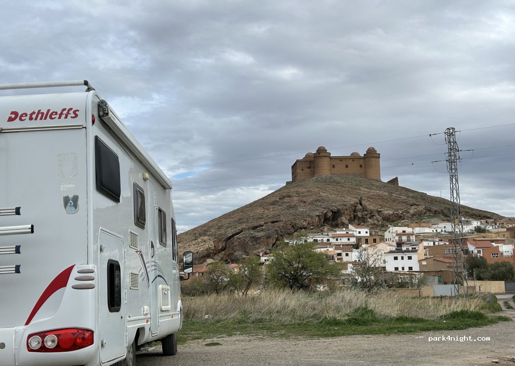 Solar de pequeños chinos y arena, casi en su mayoría nivelado. Un sitio muy tranquilo para dormir para hacer la visita al castillo (abre solo los miércoles) y al pueblo. Justo al lado hay un bar donde ponen ricas tapas. Contenedores cerca.