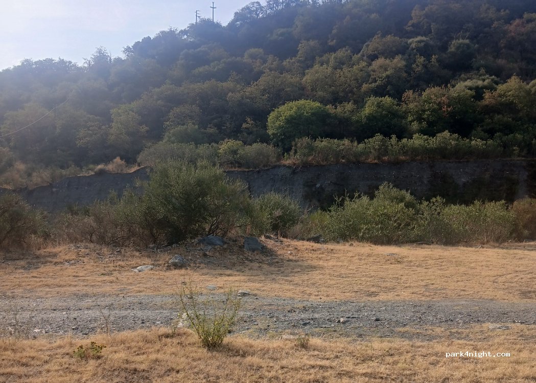 Sehr schöner Stellplatz, aufgrund der geographischen Lage selbsterklärend eher feucht und kühl. Weg ins Flussbett ganz frisch durch Regenfälle ausgewaschen und ohne Geländewagen derzeit nicht befahrbar. Wir standen auf der Freifläche davor und verbrachten eine ruhige Nacht. selten kommen Autos die Schotterstraße vorbei und sogar die carabineri fuhren schweigend vorbei.