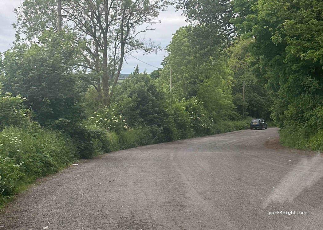 Stayed here loads during the day as I work knights in the area good little spot not that level but there is a bin and bottle bank and it’s not that busy with traffic. If you turn onto the little lane that runs off it there is also a park up patch of dirt not far down that lane maybe 50m but I’d avoided the woods car park further along the road and it gets lots of dog walkers in the day time