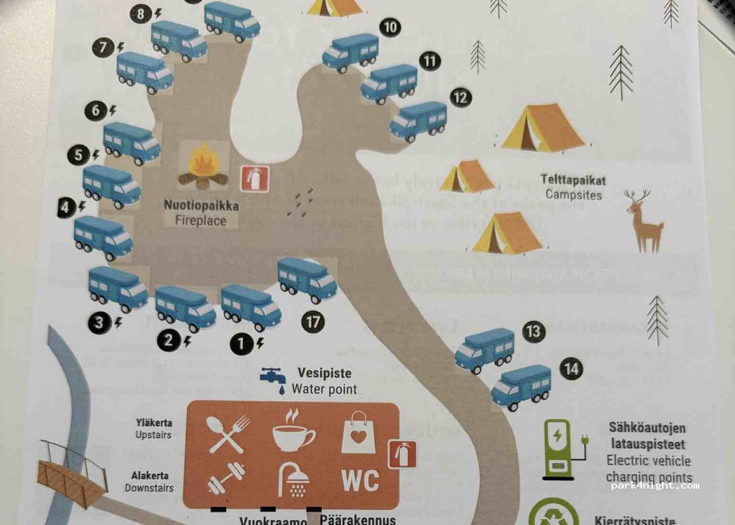 Very friendly campsite in the resort. Easy access via the small winter road from the E75, 6 km away. Snowmobile rentals are available.