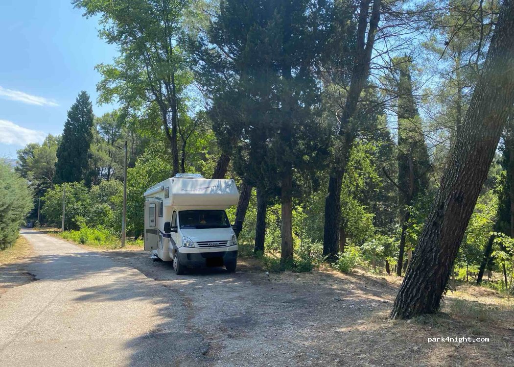 Miejsce przy parku pod drzewami - jest cień. Wieczorami ludzie przychodzą poćwiczyć, spędziliśmy tam jedną noc. W nocy również spotykają się tam ludzie, lecz nie jest to uciążliwe. Obok są kosze na śmieci oraz poidełko z wodą.