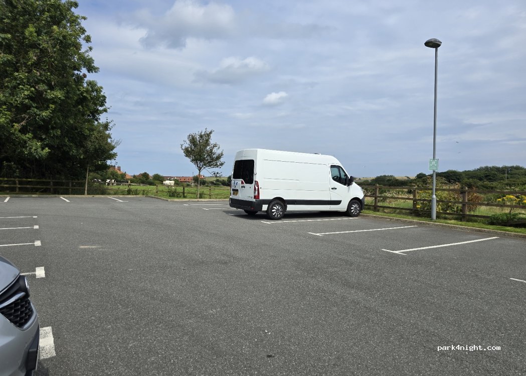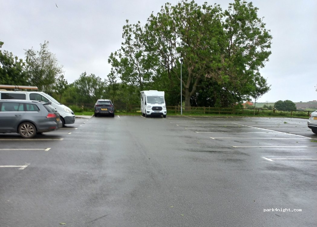 It’s a great place to park to visit Whitby. Only allow 2 campers per night, big car park. Park at the back near trees. Pop into bar and give reg & tel details. It’s £5 per night which goes in the charity box. Very quiet & safe. 15 mins walk downhill into Whitby harbour. Sainsburys 2 min walk for supplies. Lidl 5 min drive away. This is our 2nd time here each year and we will definitely return.