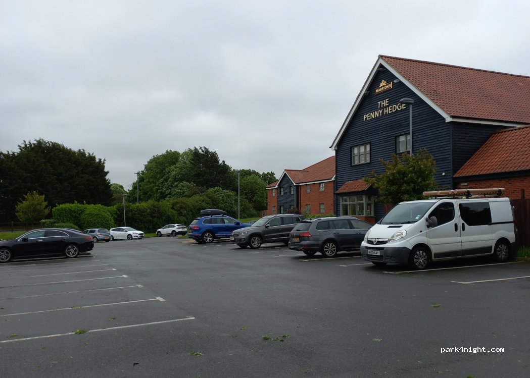 The pub only allows ? 3-4 camper/moterhome however, carry on past the pub into cul-de-sac enough room for other Motorhomes downside is obvious no facilities and council. Depot start work 6 am including Sundays. would use again