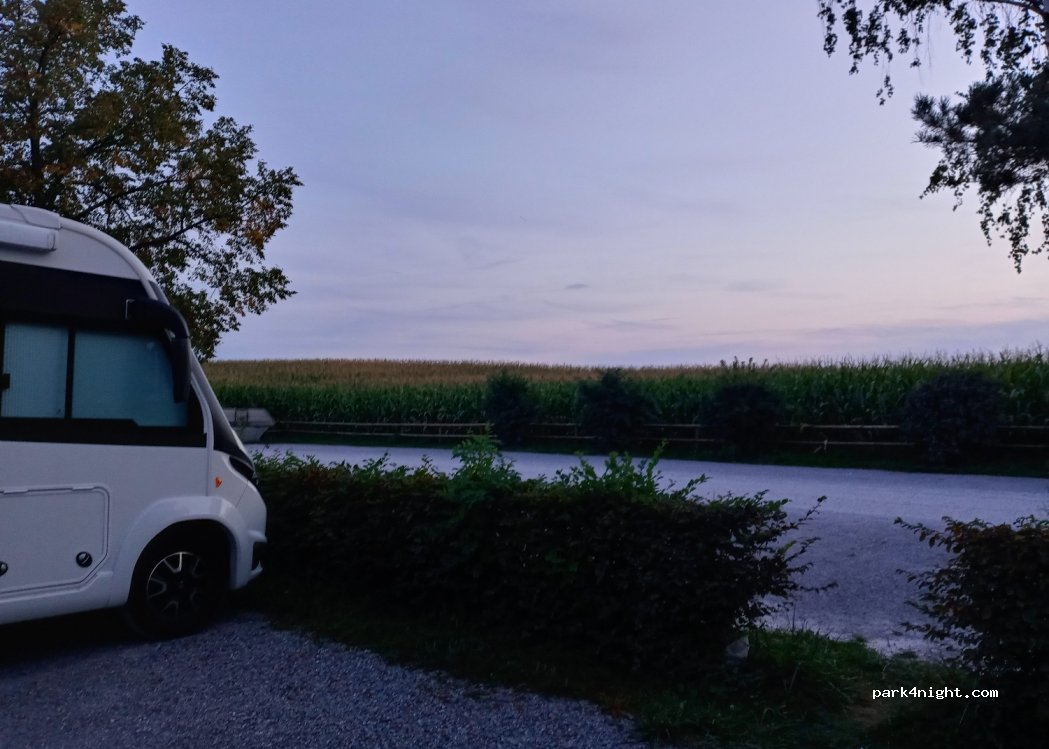 Parking entouré de verdure et propre. Toilettes à disposition à l’entrée. Nous avons passé la nuit à deux véhicules (allez au fond du parking, il y a qq places autorisées pour camping-car pour y être un peu plus isolés, la première rangée dédiée aux véhicules de loisirs était bien remplie pour une fin octobre !).